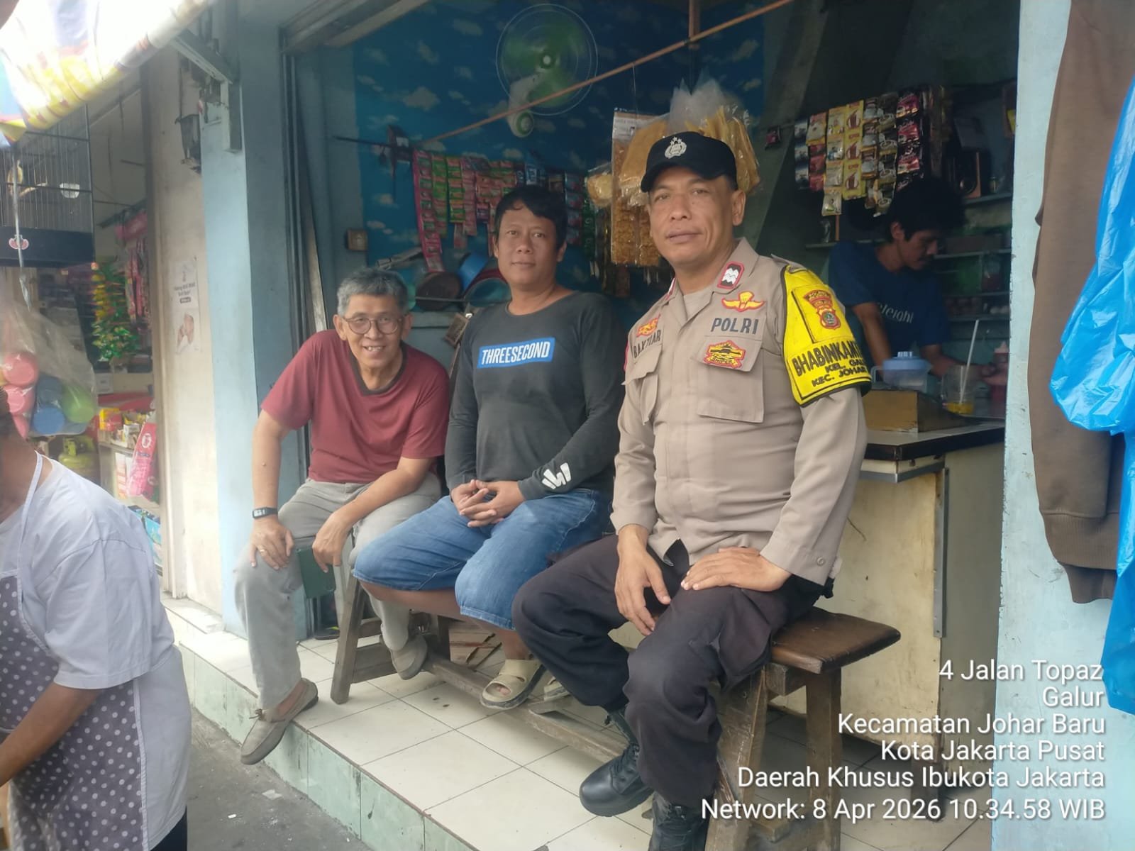 detikhukum.id, || Jakarta Pusat – Dalam rangka menjaga situasi keamanan dan ketertiban masyarakat, Bhabinkamtibmas Kelurahan Galur Aiptu Baktiar melaksanakan patroli dan sambang warga di wilayah Kelurahan Galur, Kecamatan Johar Baru, Jakarta Pusat, Rabu (8/4/2026) pukul 11.30 WIB.
