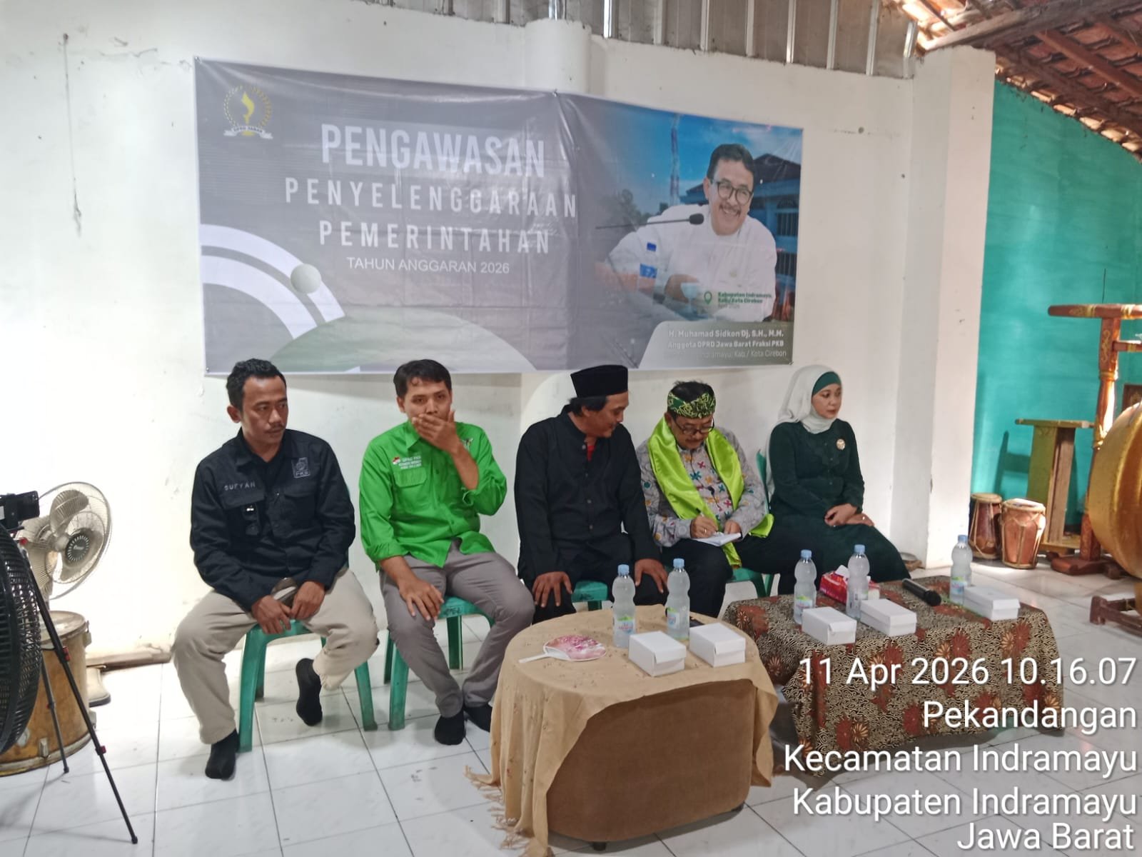 Anggota Komisi I Dewan Perwakilan Rakyat Daerah (DPRD) Provinsi Jawa Barat dari Partai Kebangkitan Bangsa (PKB), H. Muhamad Sidkon D.J, S.H,.M.M. menggelar Kegiatan Pengawasan Pelaksanaan Pemerintahan Didesa Pekandangan dan mengunjungi ke sanggar maestro tari topeng Mimi Rasinah di Jl. Sutajaya No. 26 RT.05 RW.03 Desa Pekandangan Kecamatan Indramayu kabupaten Indramayu, Sabtu (11/04/2026).