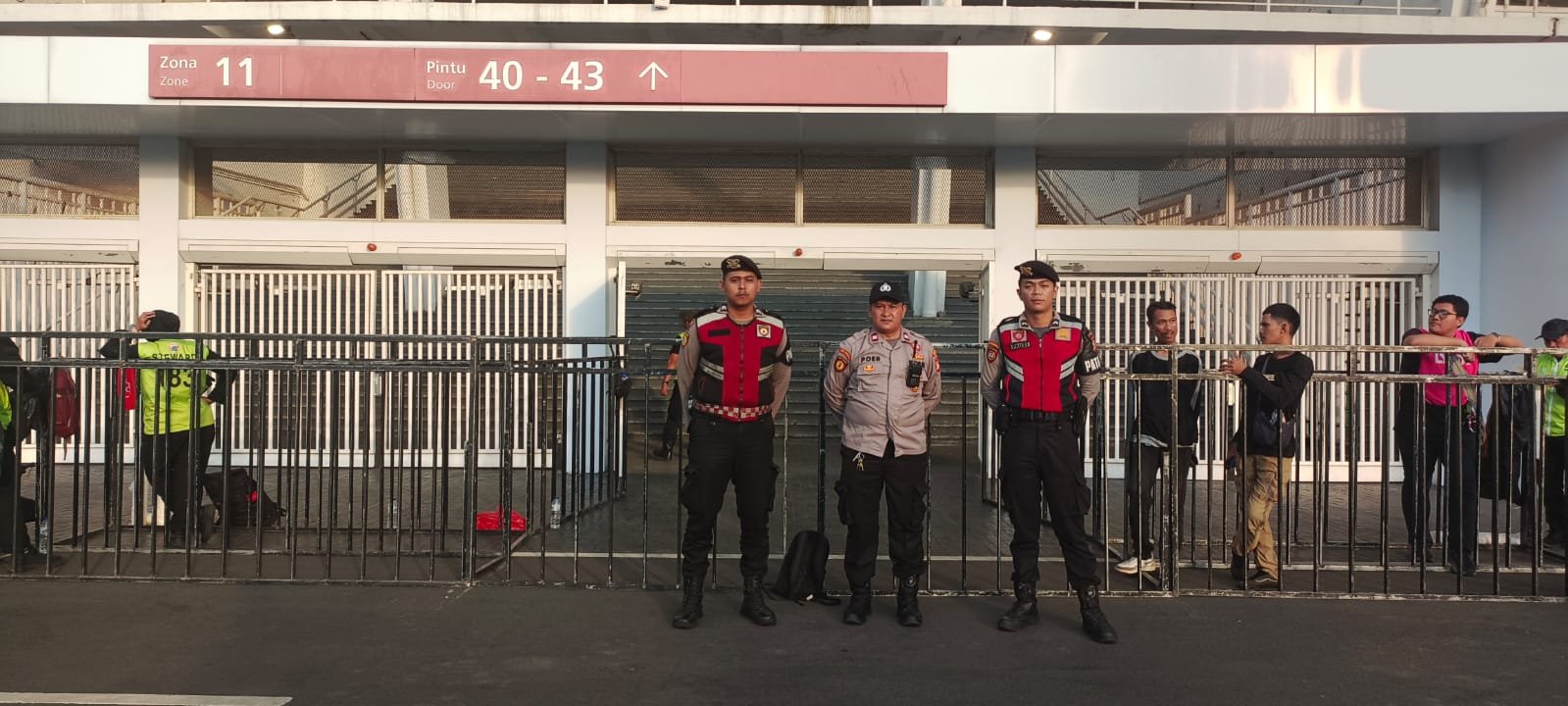 Dalam kegiatan tersebut, tercatat sebanyak 18 personel diterjunkan di Zona 11, yang terdiri dari unsur Polda Metro Jaya, pengamanan objek vital (Obvit), petugas steward, serta petugas tiket. Dari jajaran Polda Metro Jaya, personel Gassum berjumlah 5 orang dipimpin oleh Briptu Hendra, sementara dari unit Obvit sebanyak 2 personel turut disiagakan untuk mendukung pengamanan di area strategis.