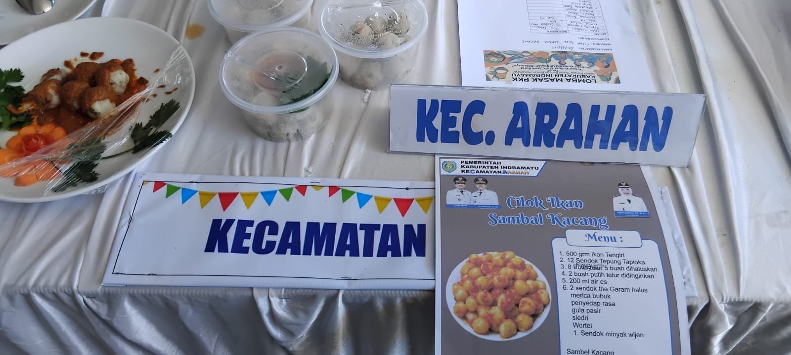 detikhukum.id,- Indramayu, – Cilok Ikan Sambal Kacang Jadi Menu Andalan Prodak ibu-ibu PKK (Pemberdayaan dan Kesejahteraan Keluarga) Kecamatan Arahan Yang DiGawangi Langsung oleh Camat Rohaenah, S.T., M.Si yang dilombakan pada acara Bulan Bangga Buatan Indramayu dan pasar murah inflasi yang diselenggarakan oleh Dinas Koperasi, UKM, Perdagangan dan Perindustrian (Diskopdagin) yang bertempat dihalaman Diskopdagin Jl. Wirapati Sindang desa Sindang, Kecamatan Sindang, Kabupaten Indramayu, Senin (13/04/2026).