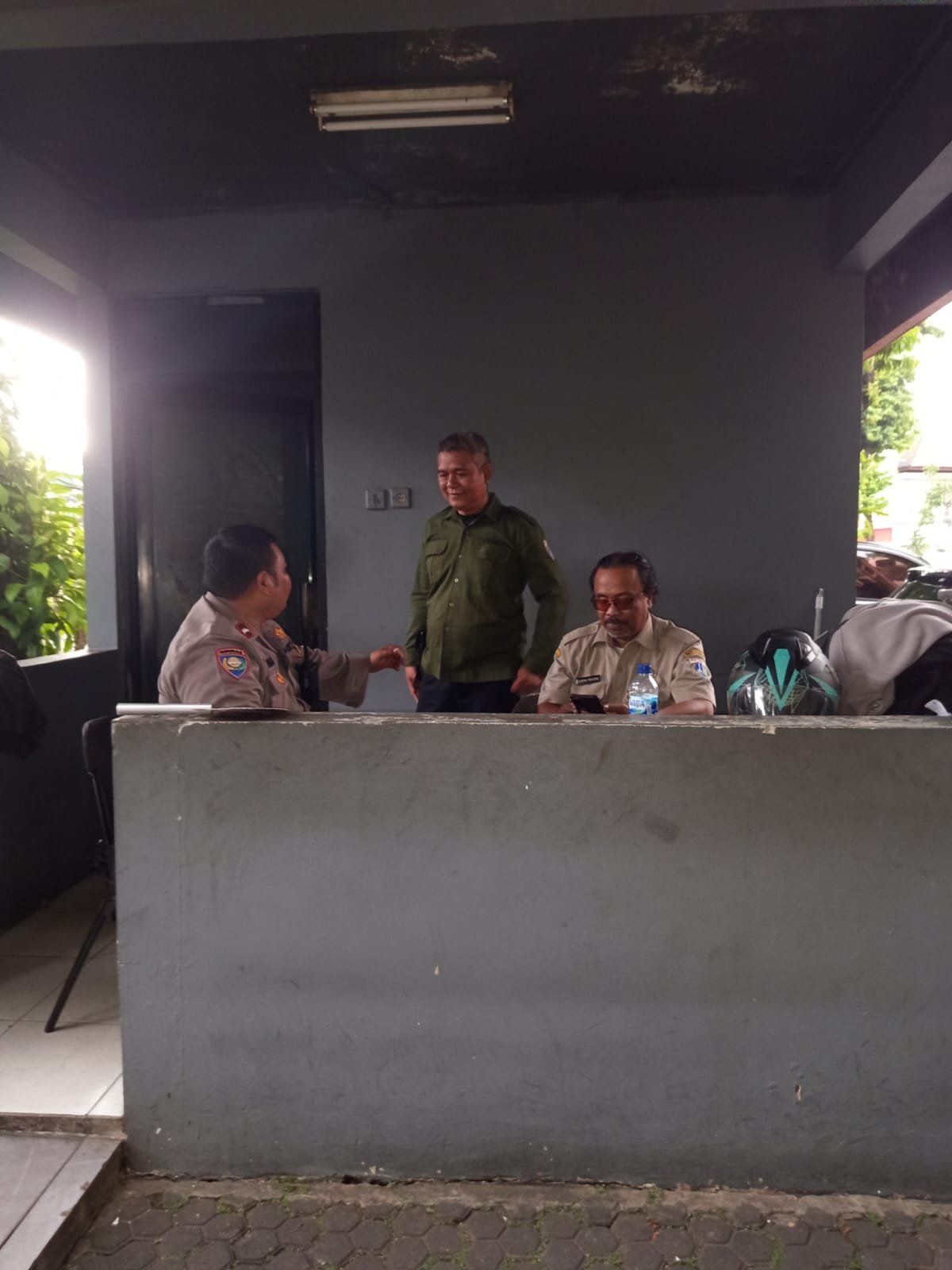 Dalam kunjungannya, Aipda Ginanjar disambut oleh Bapak Sugeng bersama petugas pengamanan dalam (Pamdal) Kantor Dinas Pertamanan dan Hutan Kota.