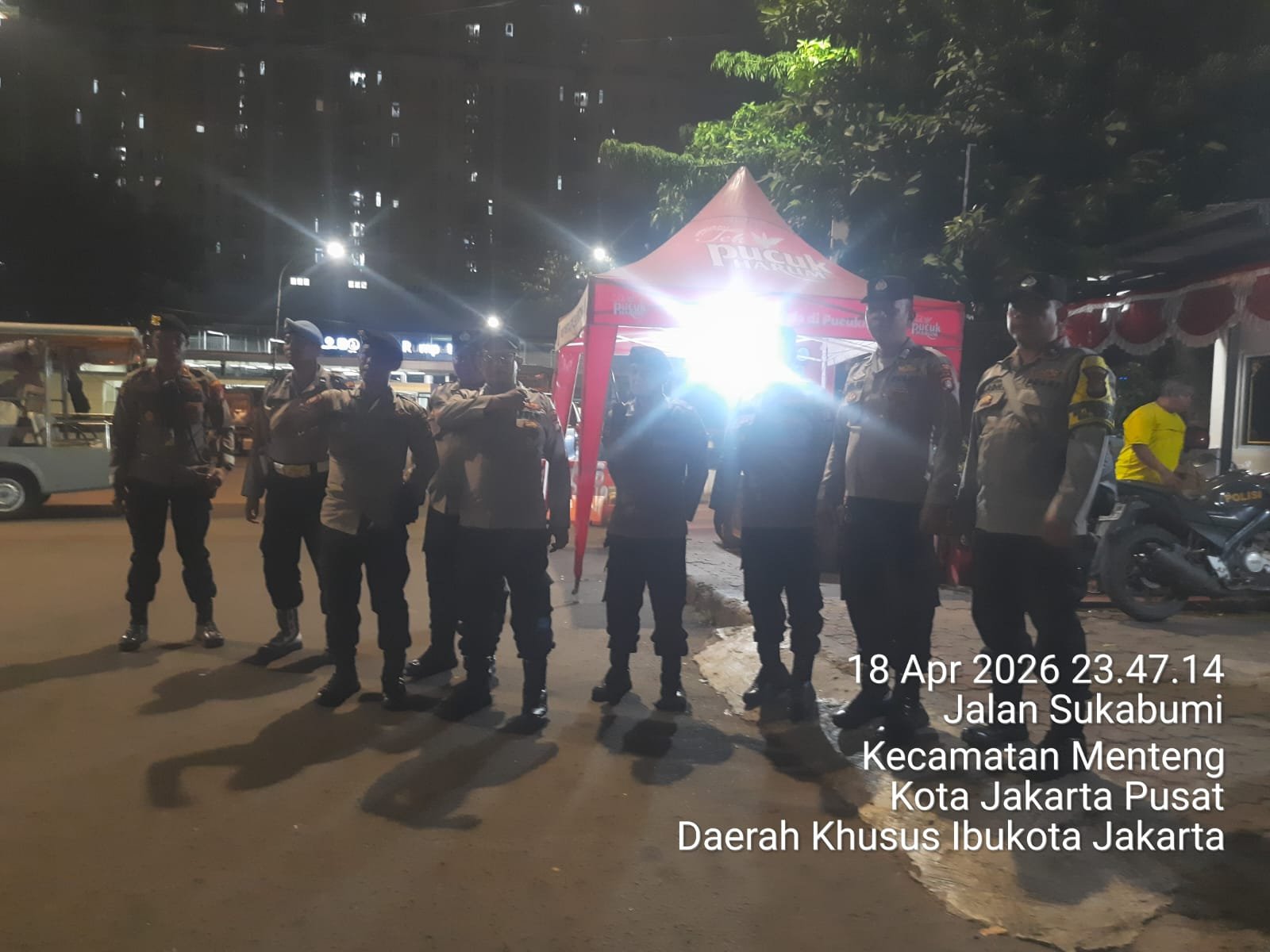 detikhukum.id, || Jakarta Pusat – Guna menjaga situasi keamanan dan ketertiban masyarakat (kamtibmas) tetap aman dan kondusif, jajaran Polsek Metro Menteng terus mengintensifkan kegiatan patroli cipta kondisi (cipkon) di wilayah rawan. Kali ini, patroli difokuskan di kawasan perbatasan Menteng–Tenggulun, Jakarta Pusat, sebagai langkah preventif dalam mengantisipasi potensi gangguan keamanan, khususnya pada malam hari. Minggu (19/4/2026)