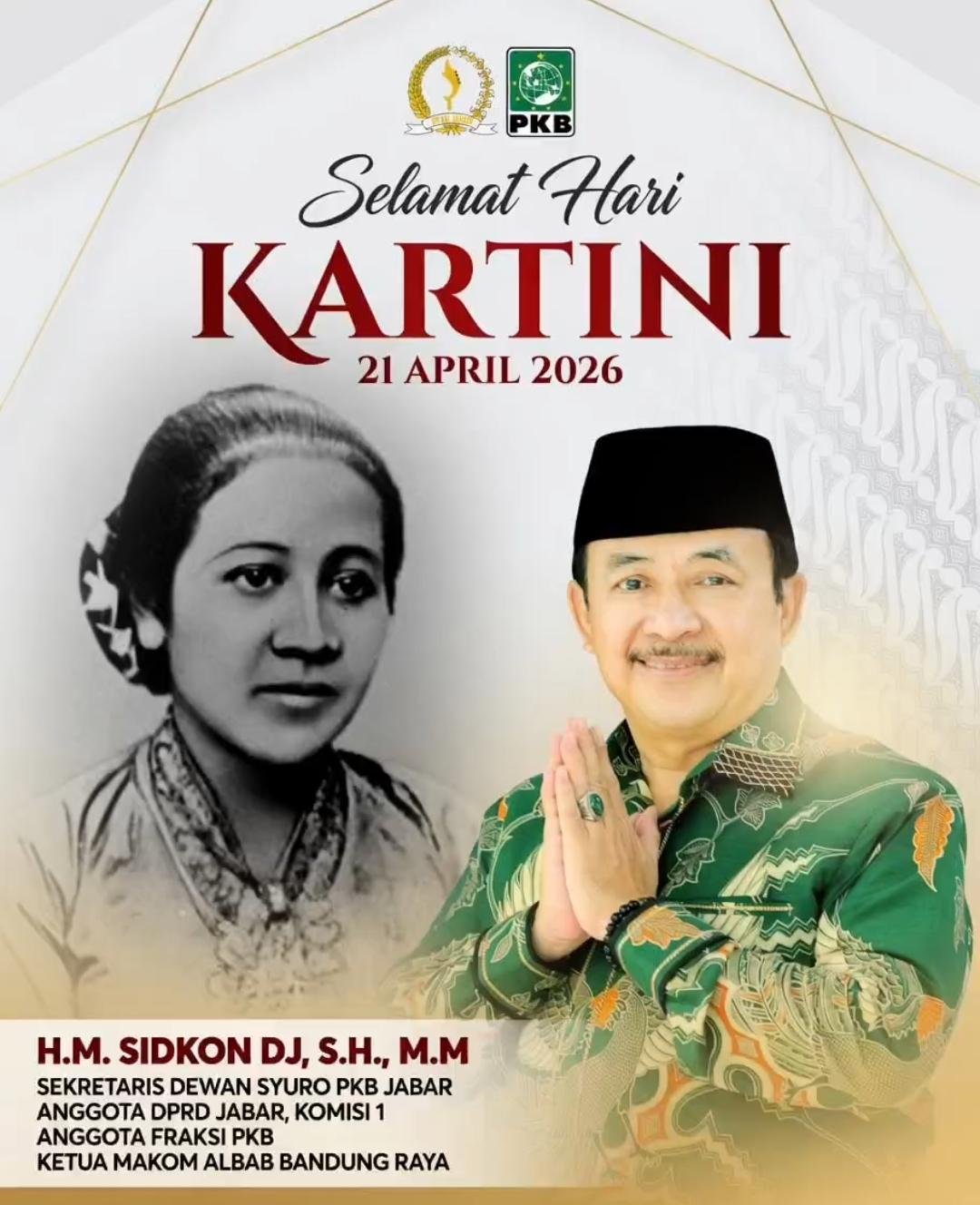 Anggota Komisi I DPRD JabarH. Muhamad Sidkon Djampi, S.H., M.M Mengucapkan Selamat Hari Kartini