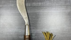 ​Saat dilakukan pemeriksaan mendalam oleh petugas di lokasi, ditemukan satu bilah senjata tajam jenis celurit sepanjang kurang lebih 30 cm yang disimpan di dalam bagasi motor. Barang bukti tersebut memiliki gagang kayu berwarna coklat tua dengan lilitan tali berwarna hitam dan emas.