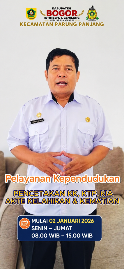 Camat Parung Panjang, Drs. Chaeruka Judhyanto Nugroho, M.Si, menyampaikan apresiasi dan terima kasih kepada Bupati Bogor, Rudy Susmanto, atas dukungan dan realisasi pelayanan administrasi kependudukan di tingkat kecamatan.