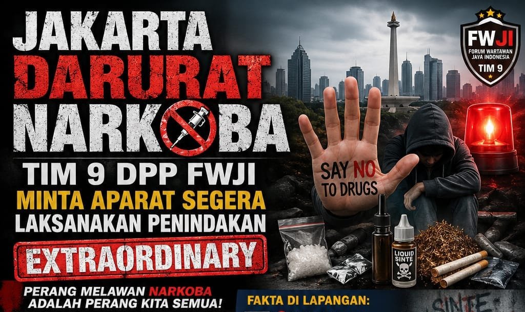 “Kita tidak bisa diam. Sabu dan sinte merusak generasi. Kalau Jakarta lumpuh karena narkoba, Indonesia rugi. Ini perang semesta yang butuh komitmen dari aparat, pemerintah, dan warga,” ujar. Risky Syaifulloh Selaku Wakil Ketua Tim 9 DPP FWJI