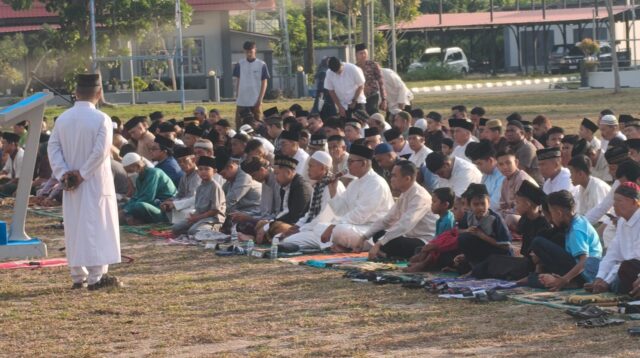 Rayakan Kemenangan Dengan Khidmat, Danlanal Bintan dan Prajurit Sholat Idul Fitri Bersama Masyarakat